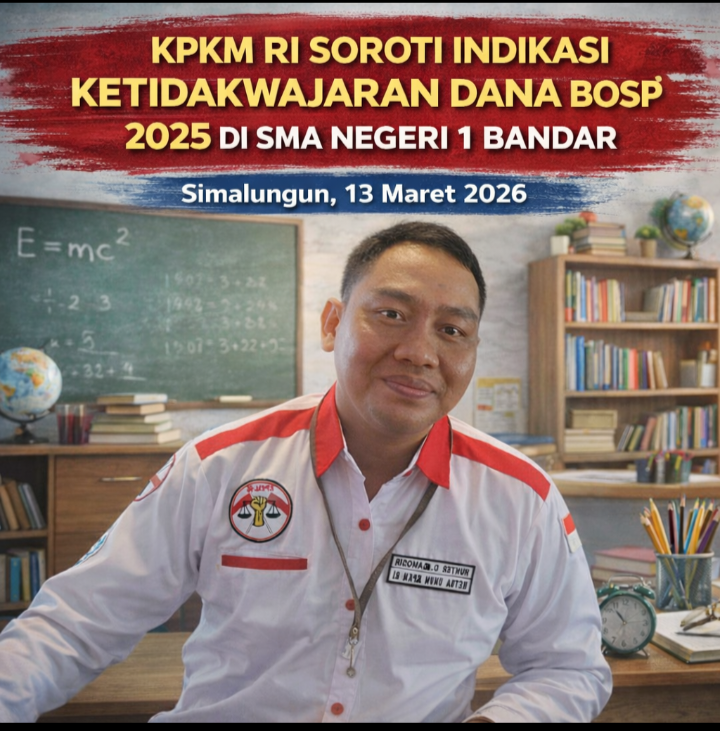 Kongres Pemberantasan Korupsi Manipulatif Rakyat Indonesia (KPKM RI) menyoroti penggunaan Dana Bantuan Operasional Satuan Pendidikan (BOSP) Tahun 2025 Tahap I di SMA Negeri 1 Bandar setelah menemukan sejumlah indikasi ketidakwajaran dalam rincian laporan penggunaan anggaran berdasarkan data yang diperoleh dari sumber resmi pemerintah.